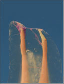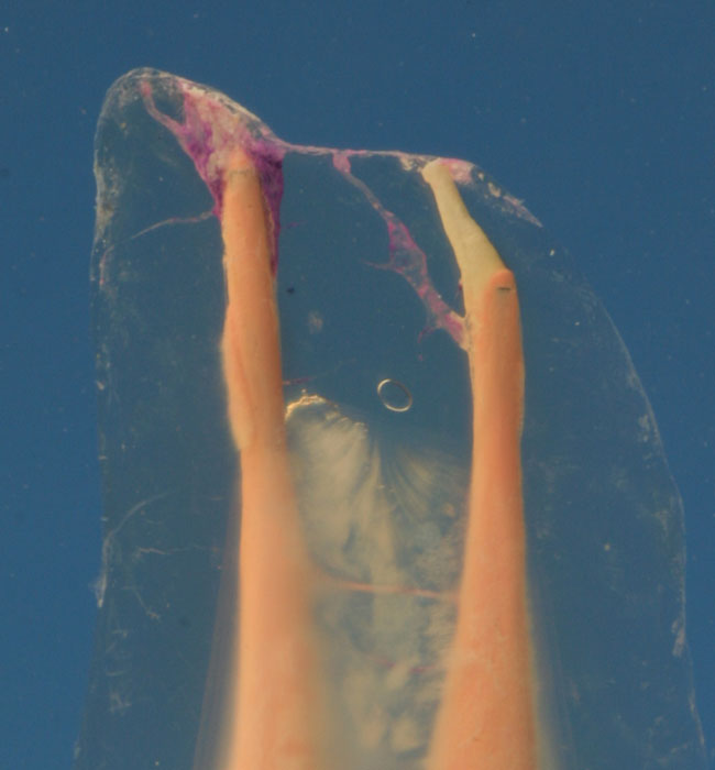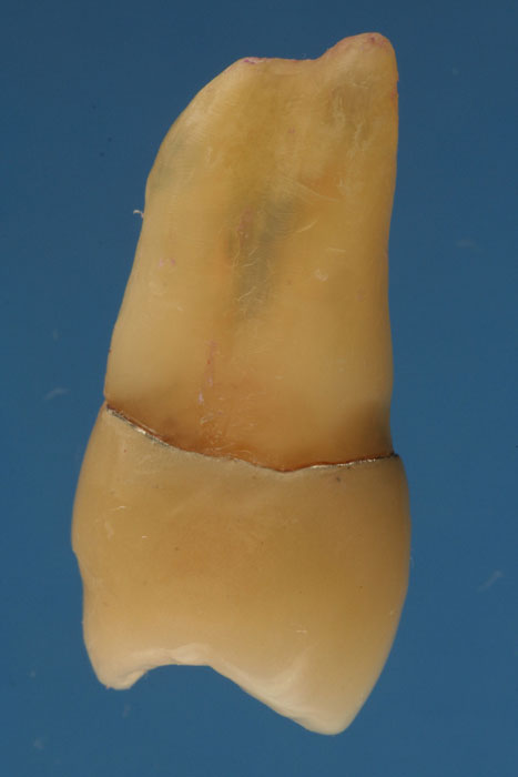 CLEARINGSERVICE - FALL 10 Oberer zweiter Prämolar mit zwei Wurzelkanälen und apikalen Ramifikationen als transparentes Präparat nach in-vitro-Behandlung