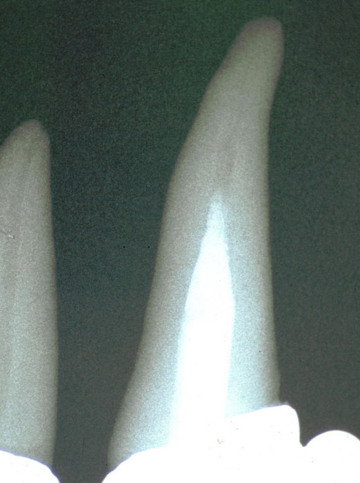 dehnung des seitlichen Schneidezahns im Röntgenbild) und es sind dort